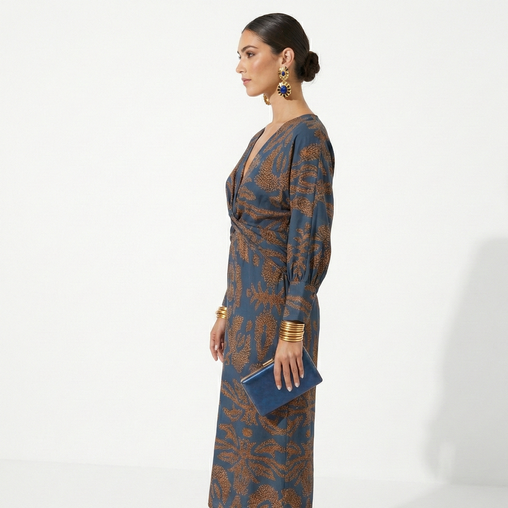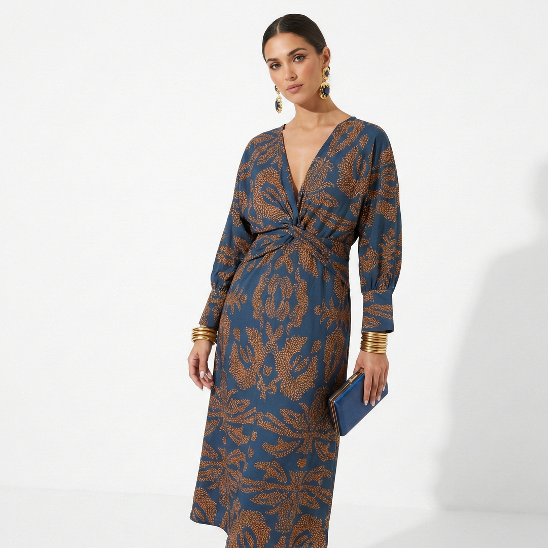 Sukienka Damska Midi W Kwiaty Dekolt V